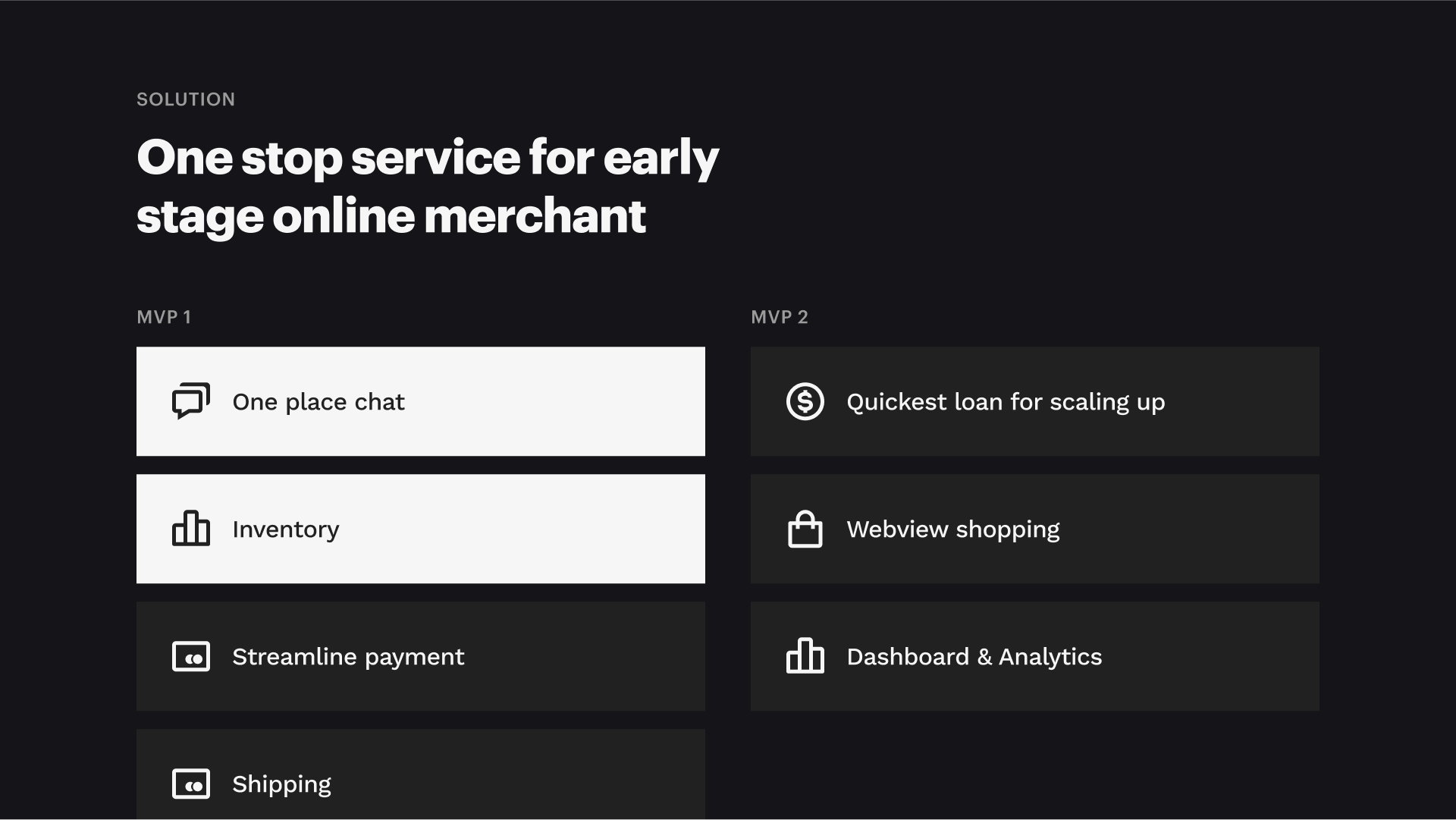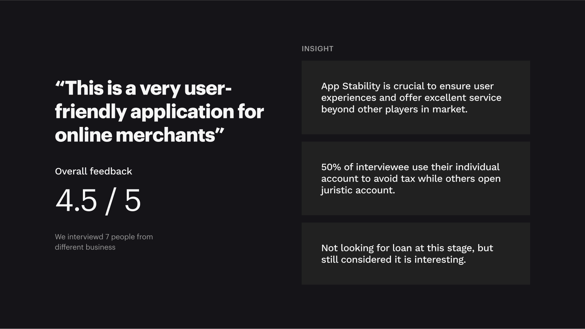 Merchant 2.0 will helps them manage their business better while we can have better knowledge of their business and the ability to underwrite loans for non-salary online merchants.