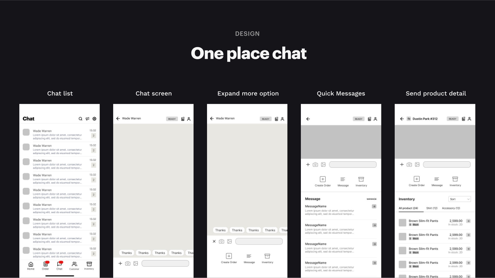 In this project, I was focus to design features that integrate all social media chats into one place which will locate in our apps. the second feature is inventory management